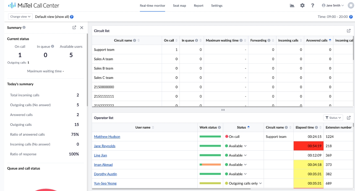 Operator list dapat memeriksa status terkini setiap pengguna, waktu yang telah berlalu untuk status tersebut, jumlah panggilan yang dijawab, durasi rata-rata panggilan, dan lainnya