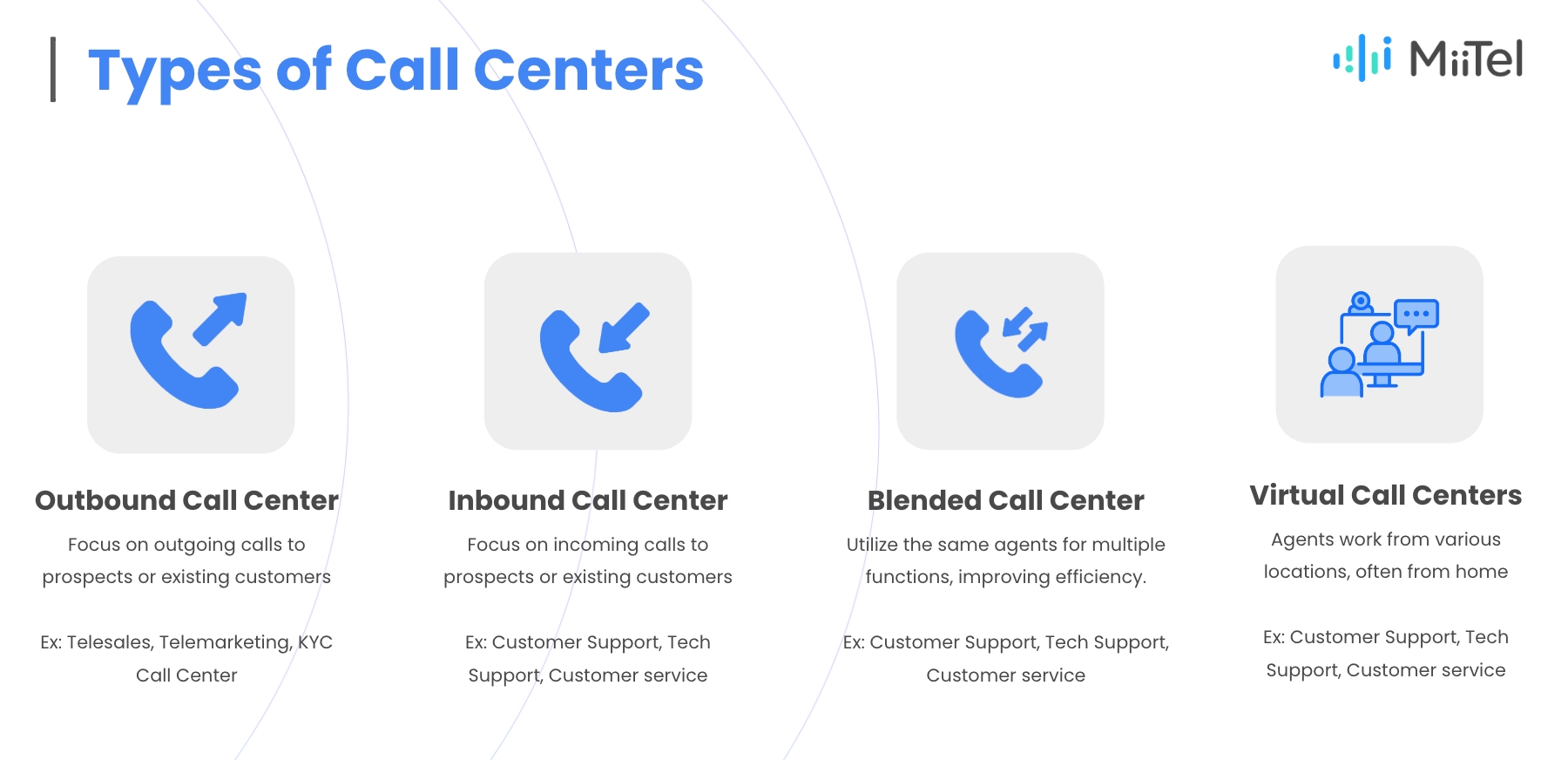 Fitur-fitur call center seperti yang ditawarkan oleh MiiTel dapat digunakan secara luas di berbagai industri dan departemen untuk meningkatkan efisiensi komunikasi dan pelayanan pelanggan. Berikut contohnya: