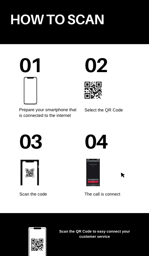 Scan to Call adalah layanan panggilan gratis di mana tidak ada biaya panggilan yang dikenakan. Dengan membagikan barcode scan to call misalkan di receptionist, di situs web Anda, atau di media sosial, kemasan produk pelanggan dapat dengan mudah terhubung dengan Anda.